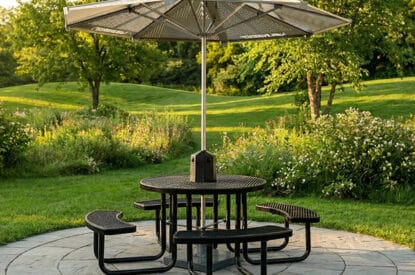 - Low maintenance, and highly durable 1 1/2″ stainless steel center post, with aluminum canopy. Minimum assembly required. Powder coated in a wide variety of options.