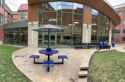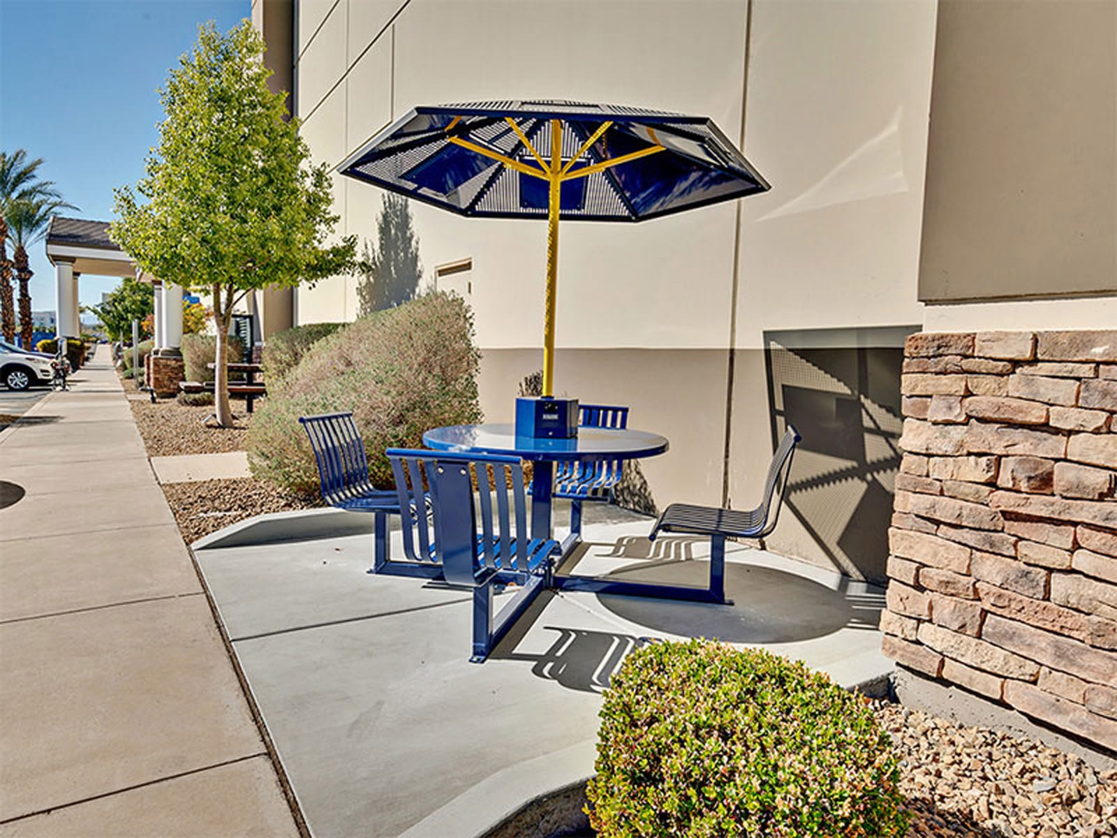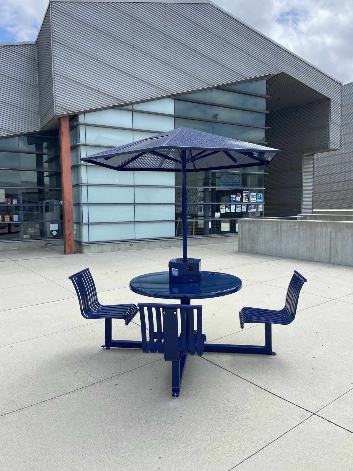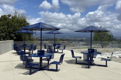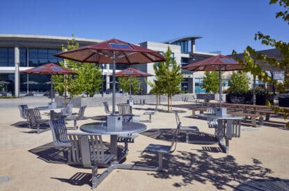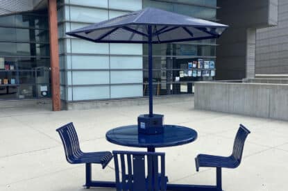 The Marquee utilizes a beautiful, vertical strap seating design available with an off-grid solar-powered charging station.