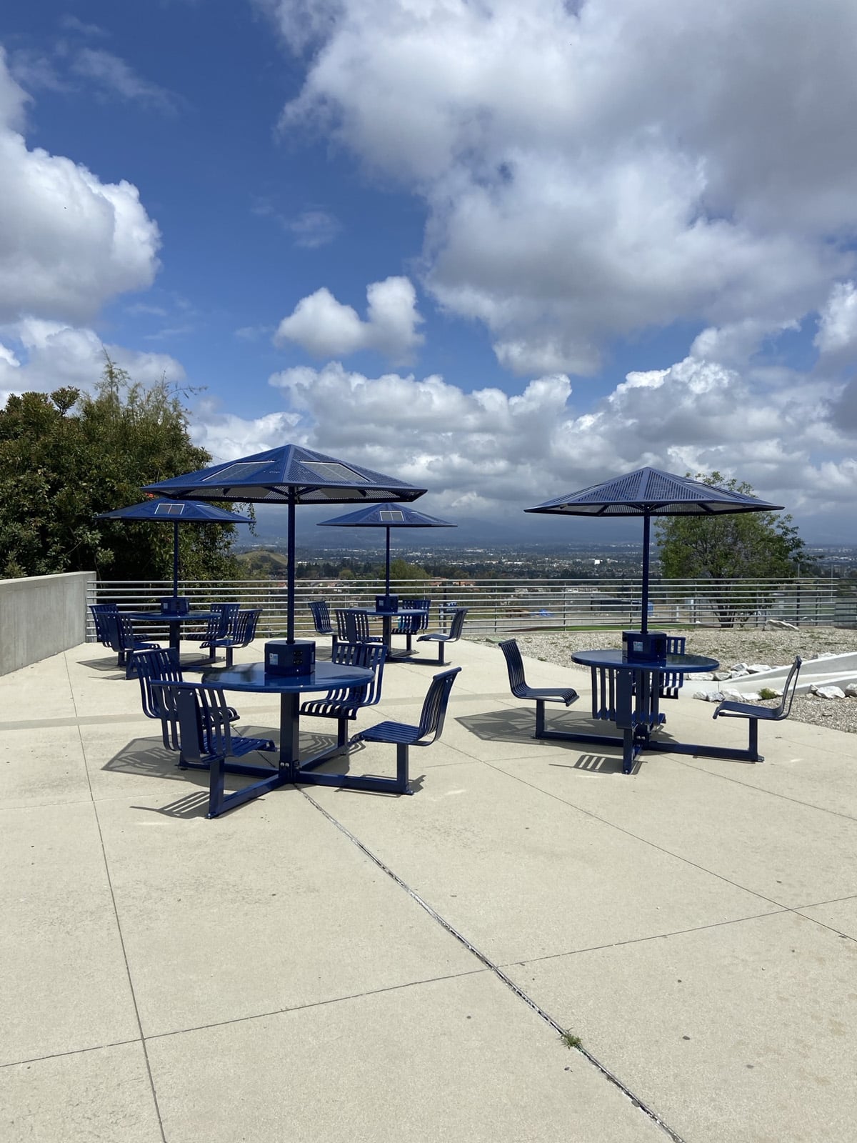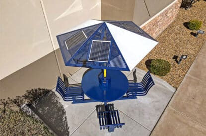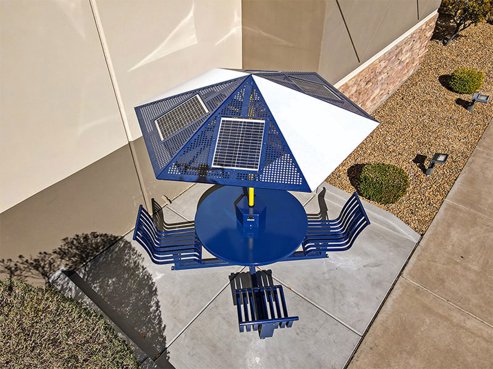 - Perforated aluminum solar parasol with 100W solar array