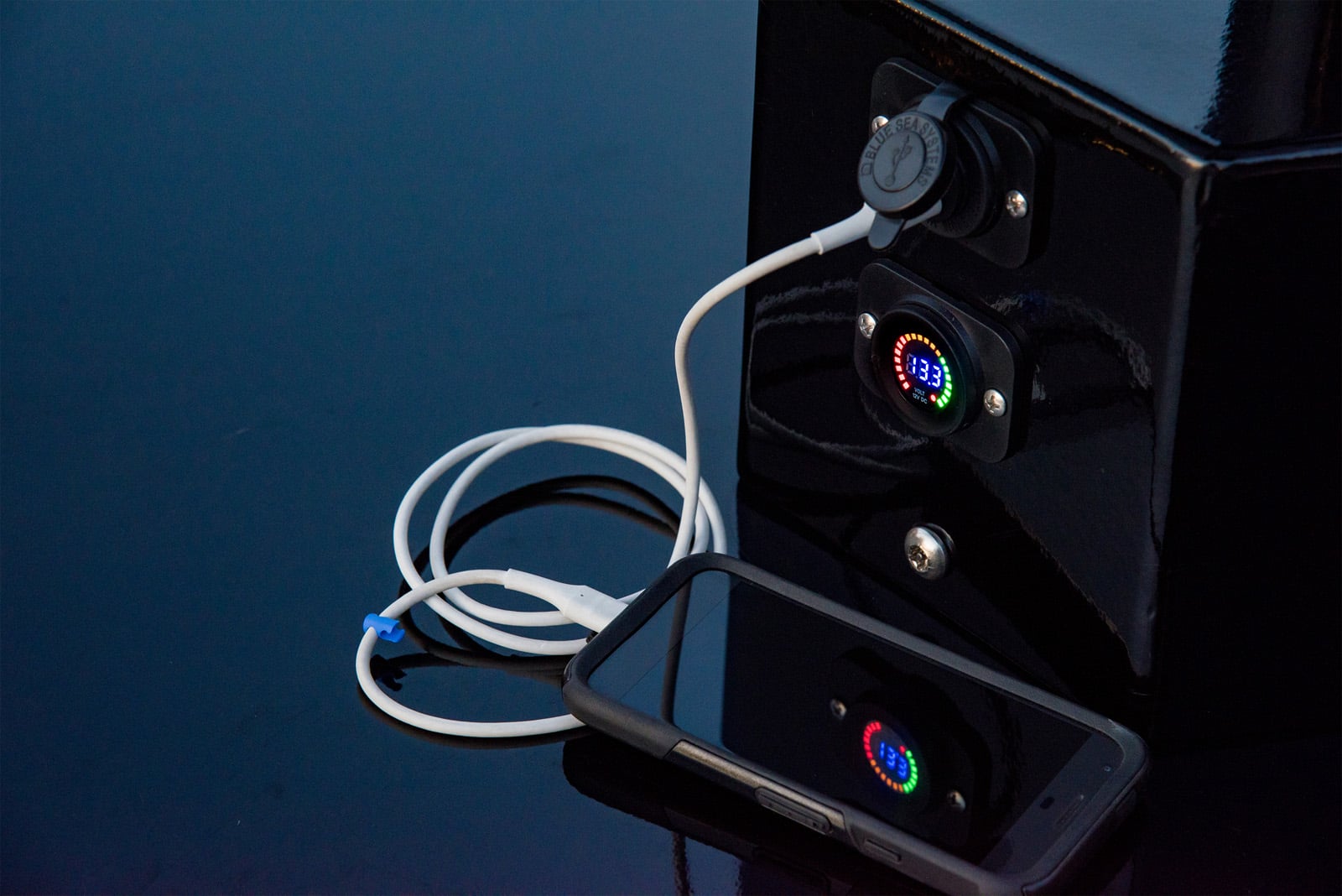 - Dual port USB/USB-C fast-charging