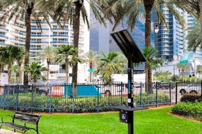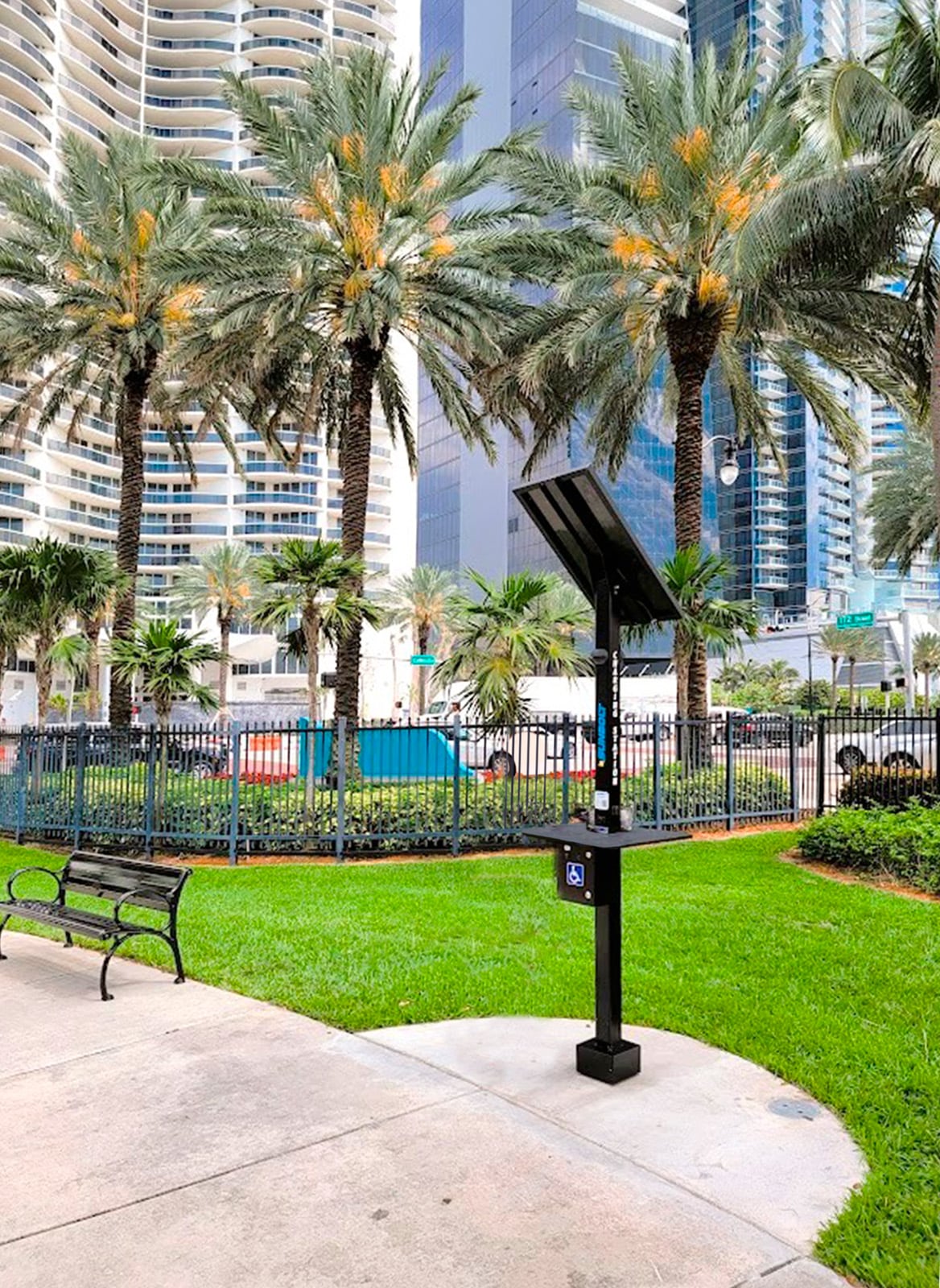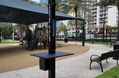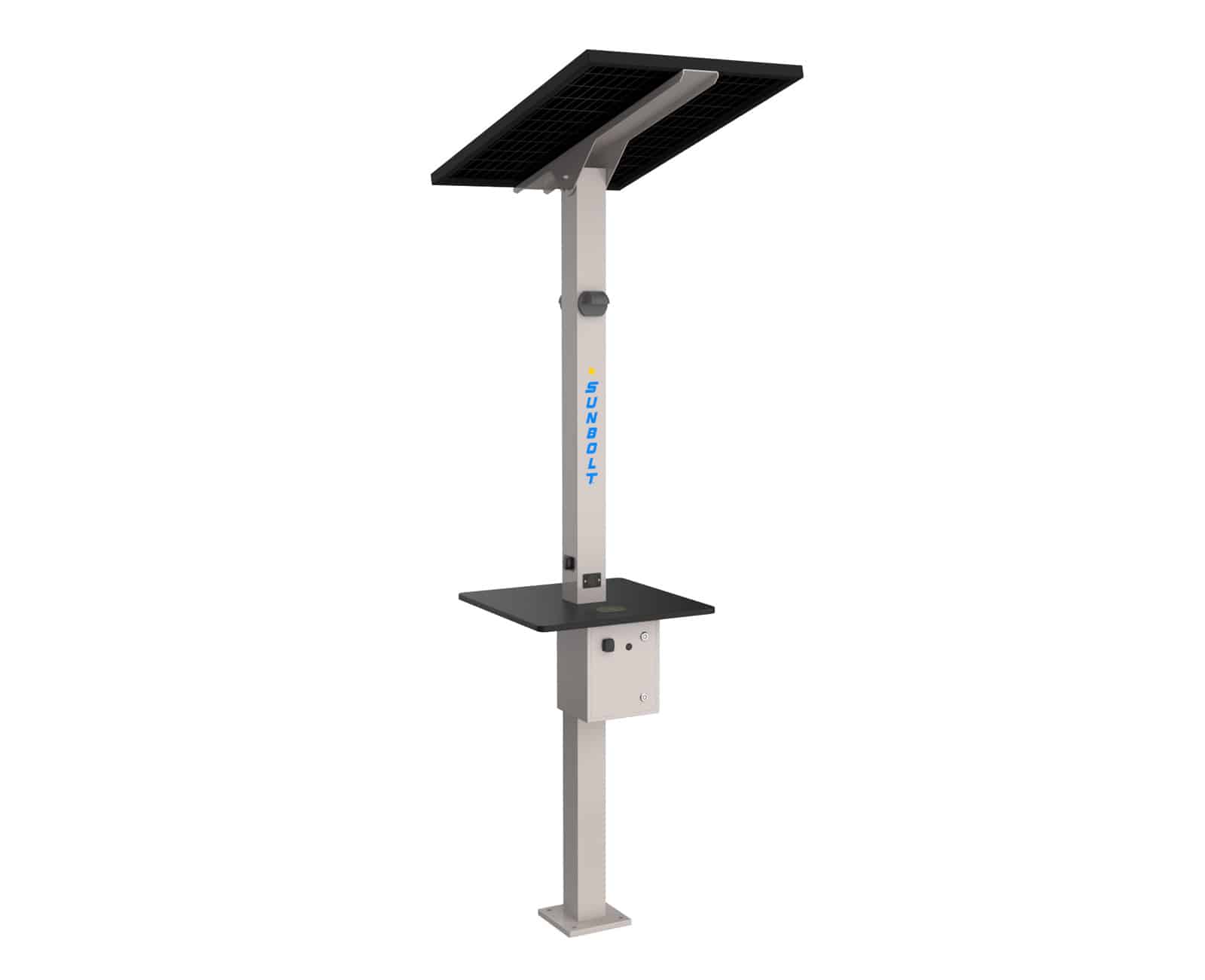 The Sprint Stand-up Solar Charging Station is suitable for a wide range of outdoor areas from parks and trails to restaurants and stadiums, bringing a fresh feel to outdoor mobile device charging. This long-endurance solar-powered charging station provides power for smartphones, tablets, and other hand-held devices.